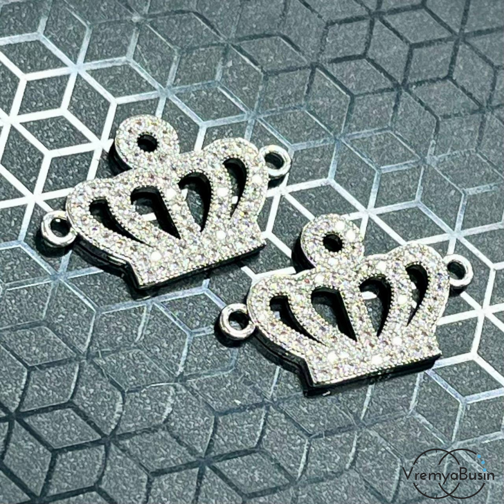 Коннектор с фианитами "Корона", 24х15 мм, латунь с родиевым покрытием (1 шт.)
