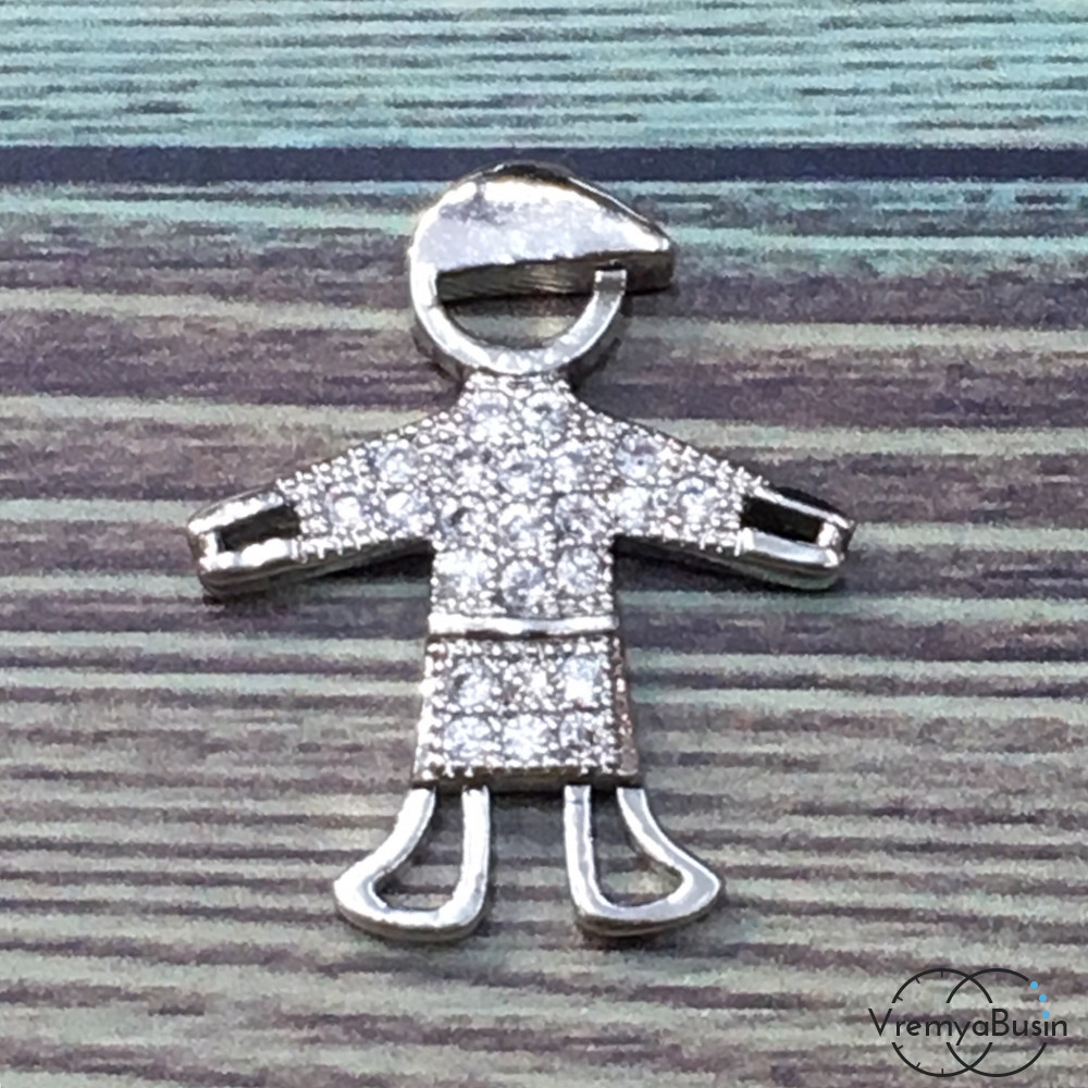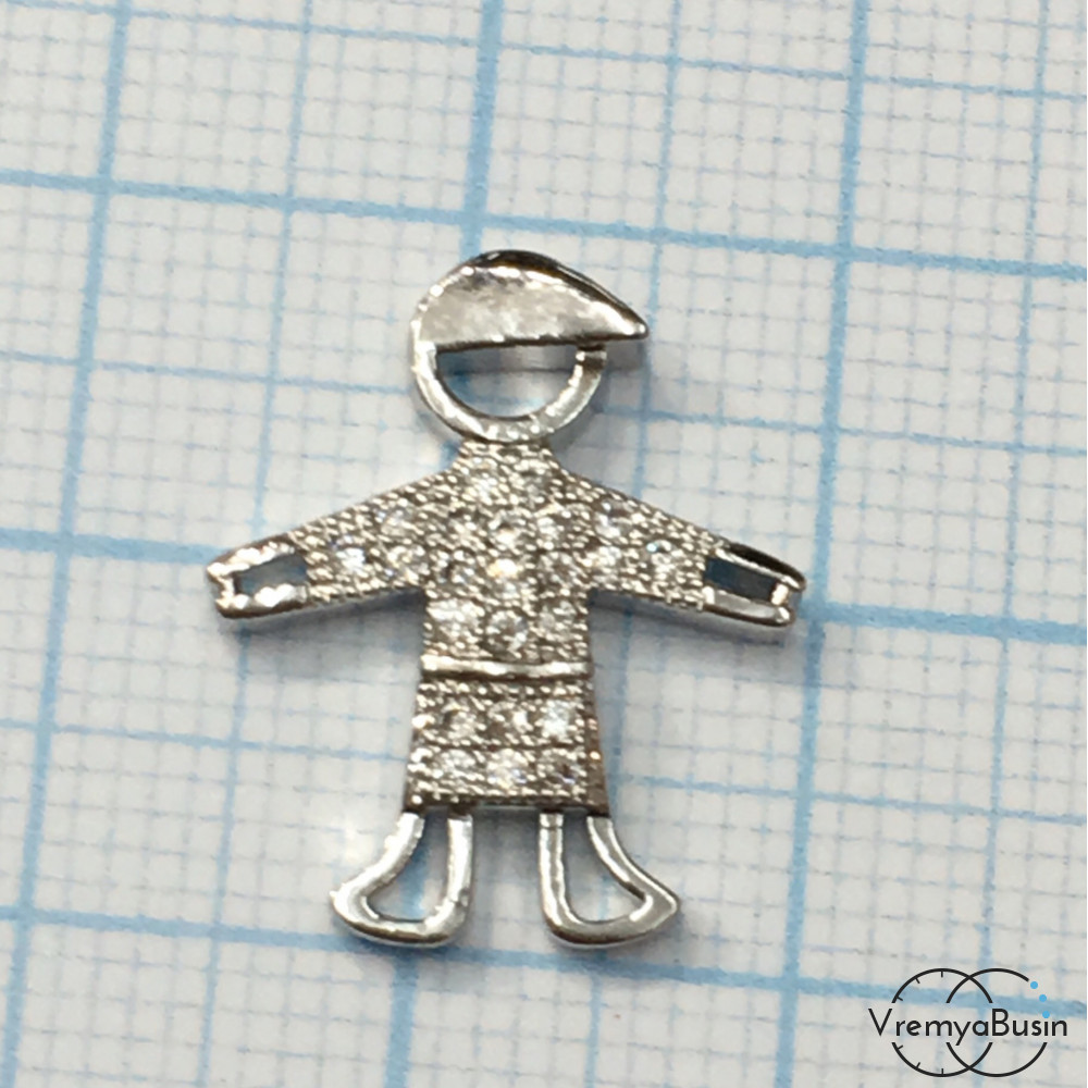 Коннектор с фианитами, латунь с родиевым покрытием (1 шт.)