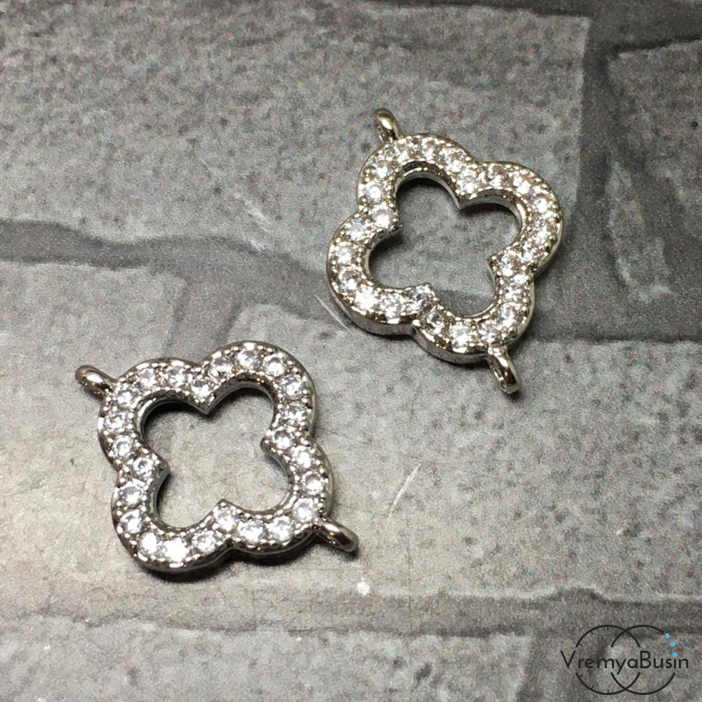 Коннектор с фианитами, 12х16 мм, латунь с родиевым покрытием (1 шт.)