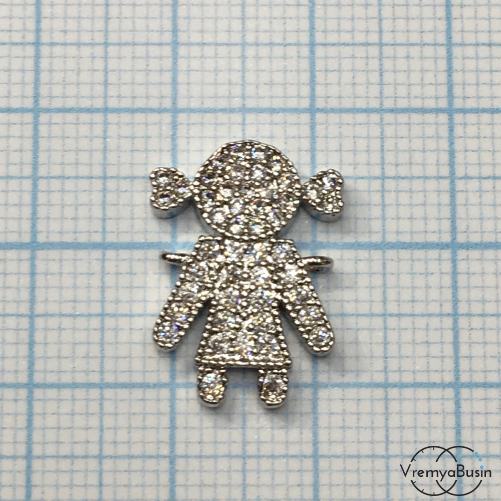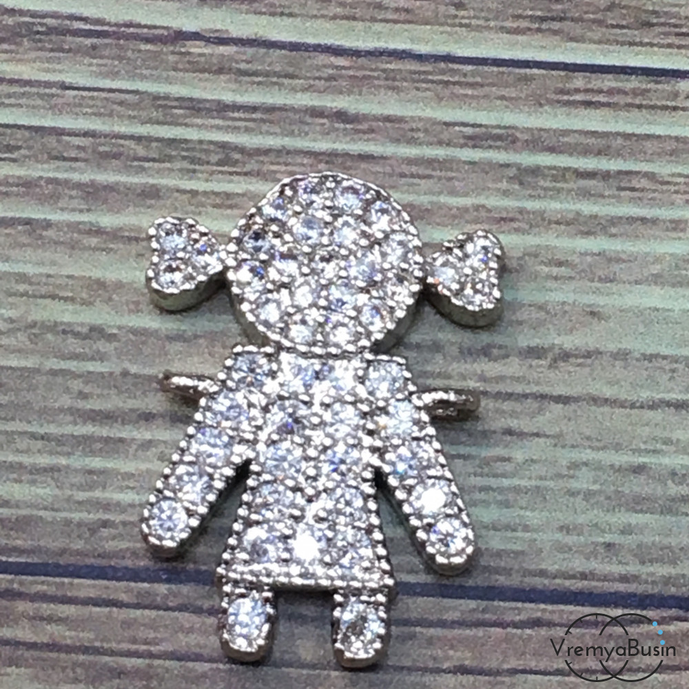 Коннектор с фианитами, латунь с родиевым покрытием (1 шт.)