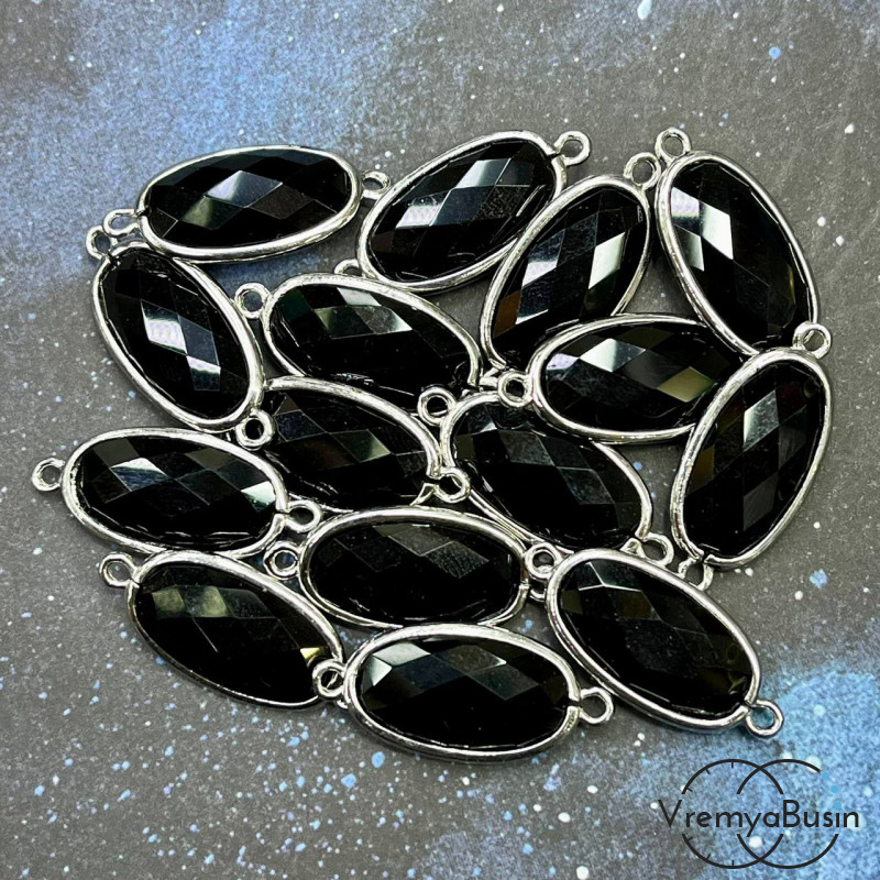 • Агат чёрный, коннектор с граненым камнем 28х12 мм в оправе цв. серебро (1 шт.)