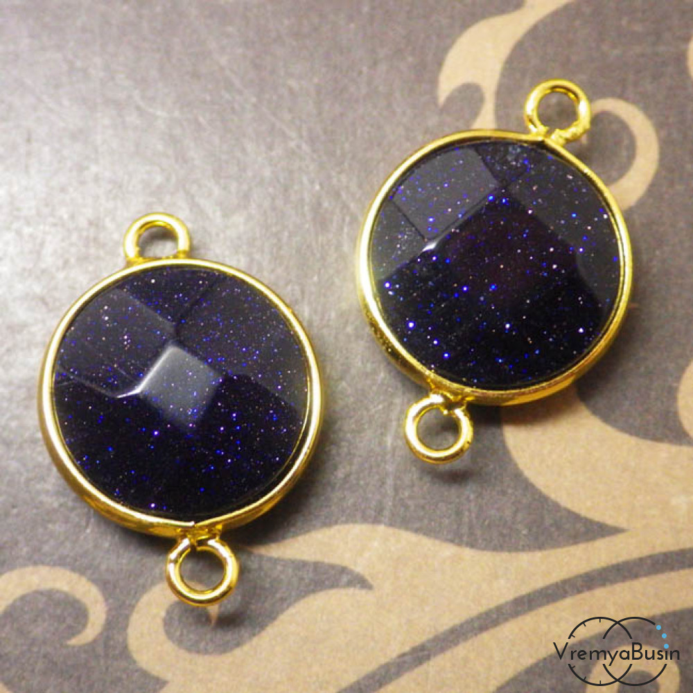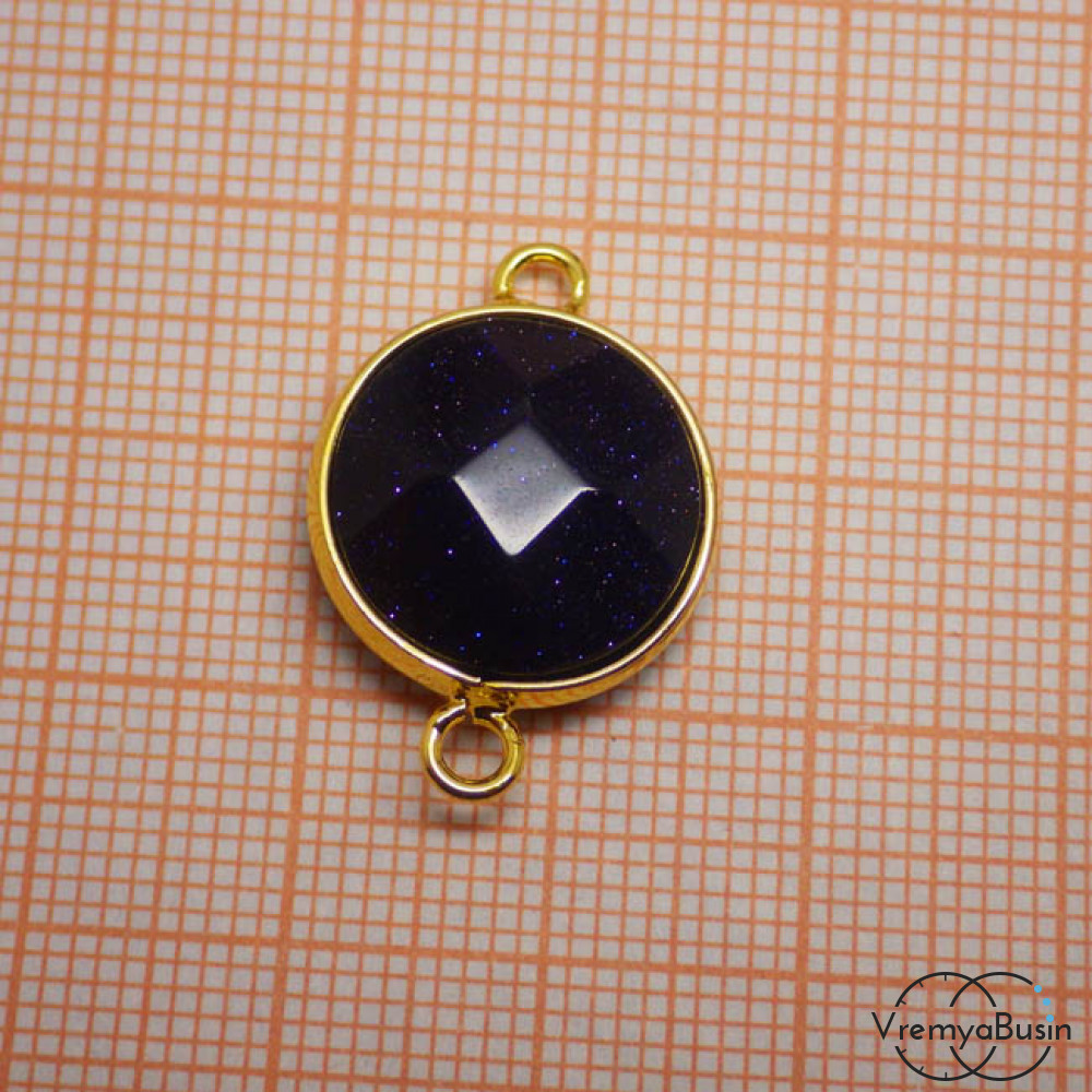 Авантюрин синий. Коннектор из камня в металле под золото (1 шт.)