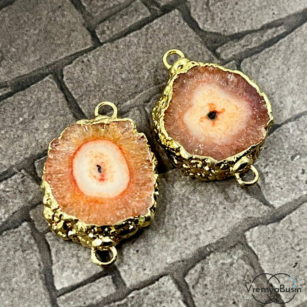 Коннектор из жеоды агата в металле под золото, ок. 20х25 мм, цв. бежевый (1 шт.)