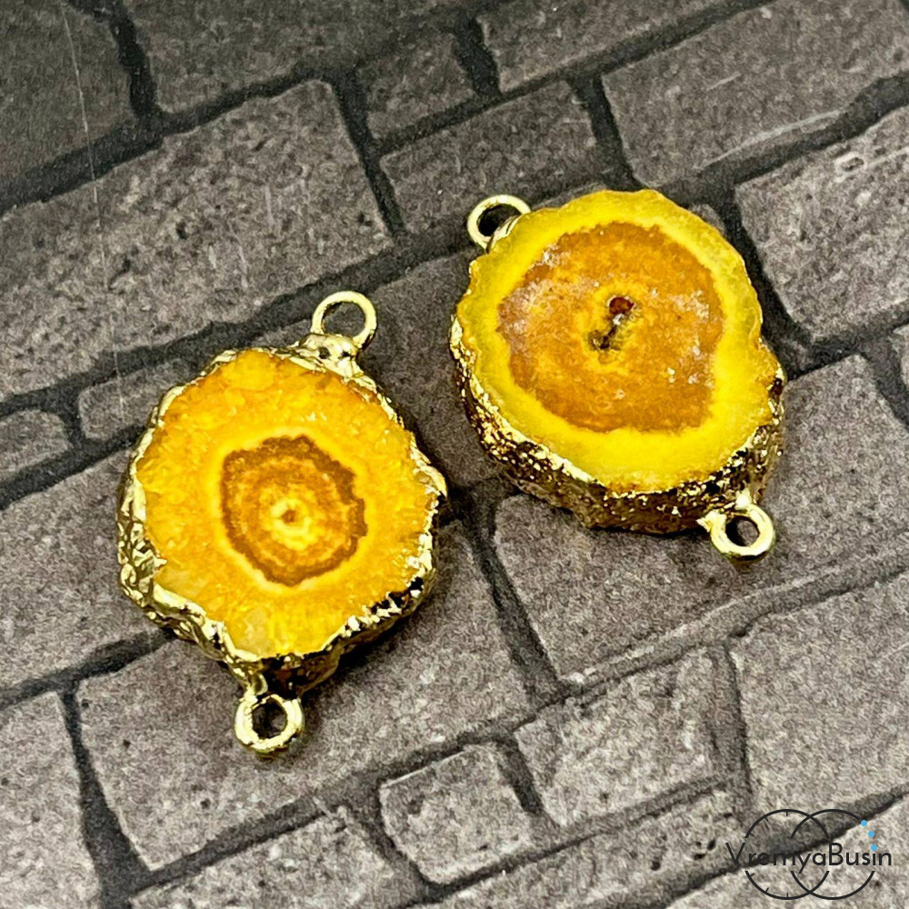 Коннектор из жеоды агата в металле под золото, ок. 20х25 мм, цв. желтый (1 шт.)