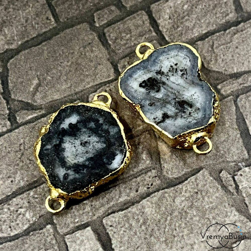 Коннектор из жеоды агата в металле под золото, ок. 20х25 мм, цв. черный (1 шт.)