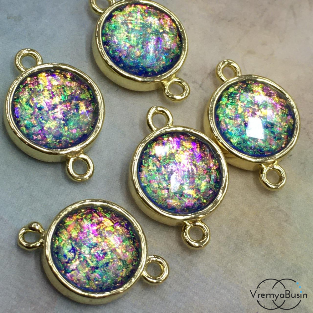 Коннектор со смолой, круг 12х18 мм, латунь с позолотой (1 шт.)