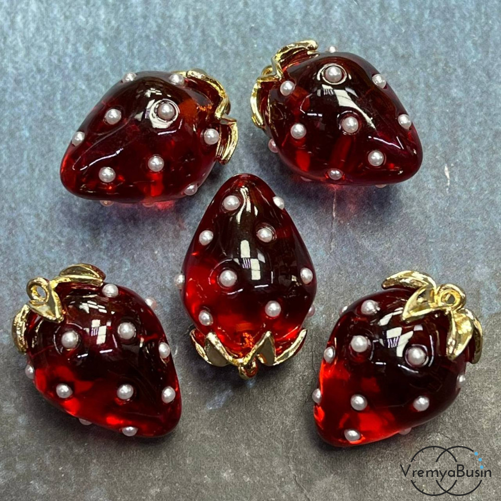 • Подвеска из смолы с жемчужинками «Клубничка», ок. 16х24 мм, латунь с позолотой, цв. красный (1 шт.)’
