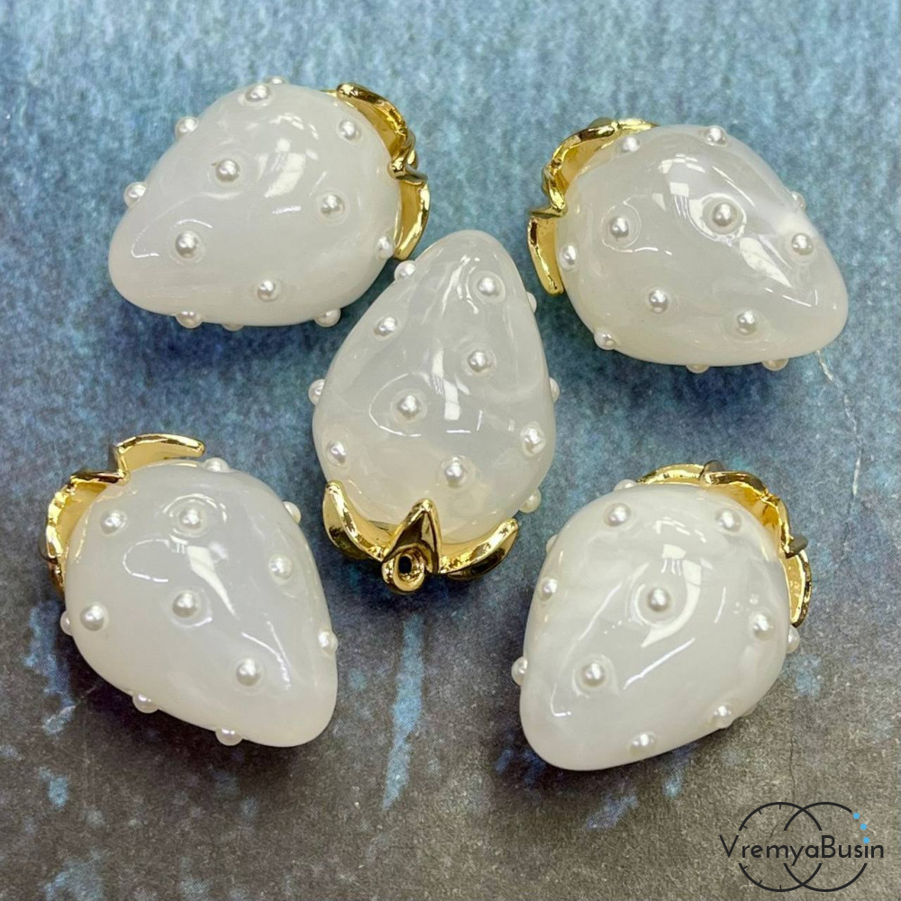 • Подвеска из смолы с жемчужинками «Клубничка», ок. 16х24 мм, латунь с позолотой, цв. белый (1 шт.)’
