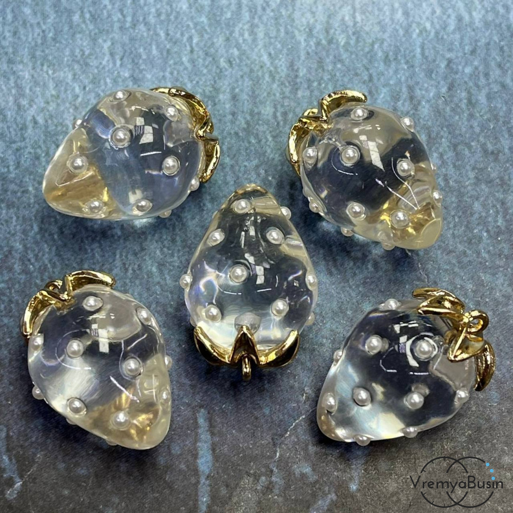 • Подвеска из смолы с жемчужинками «Клубничка», ок. 16х24 мм, латунь с позолотой, цв. прозрачный (1 шт.)’