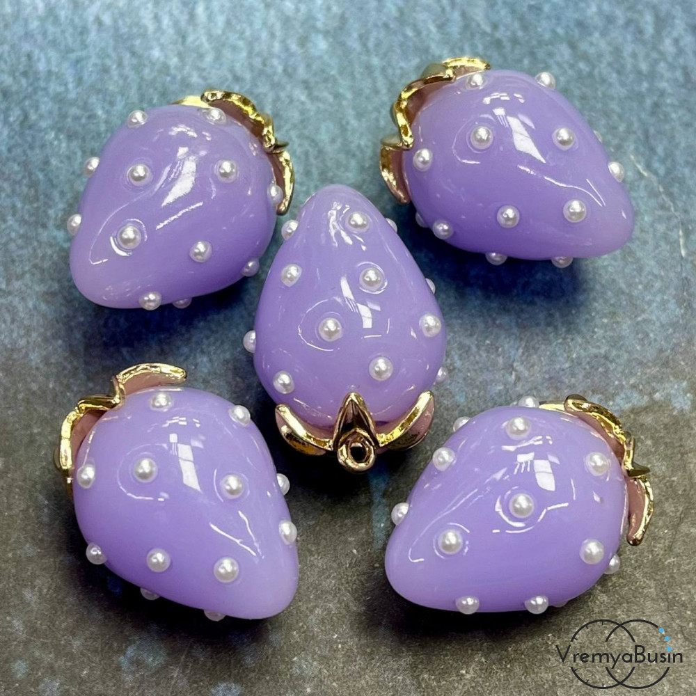 Подвеска из смолы с жемчужинками «Клубничка», ок. 16х24 мм, латунь с позолотой, цв. лиловый (1 шт.)’