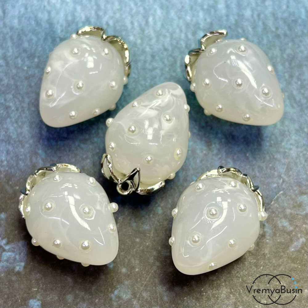 • Подвеска из смолы с жемчужинками «Клубничка», ок. 16х24 мм, латунь с родиевым покрытием, цв.  белый (1 шт.)’