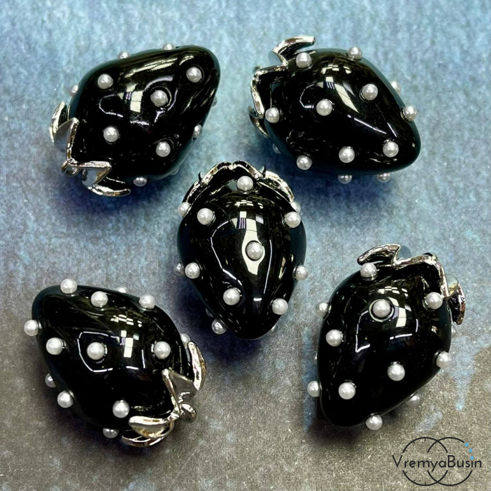 • Подвеска из смолы с жемчужинками «Клубничка», ок. 16х24 мм, латунь с родиевым покрытием, цв.  черный  (1 шт.)’