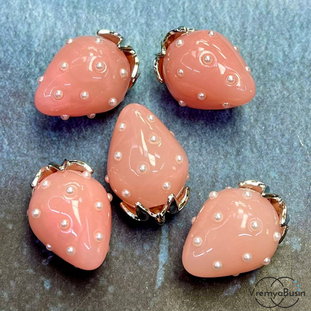 • Подвеска из смолы с жемчужинками «Клубничка», ок. 16х24 мм, латунь с родиевым покрытием, цв.  розовый  (1 шт.)’