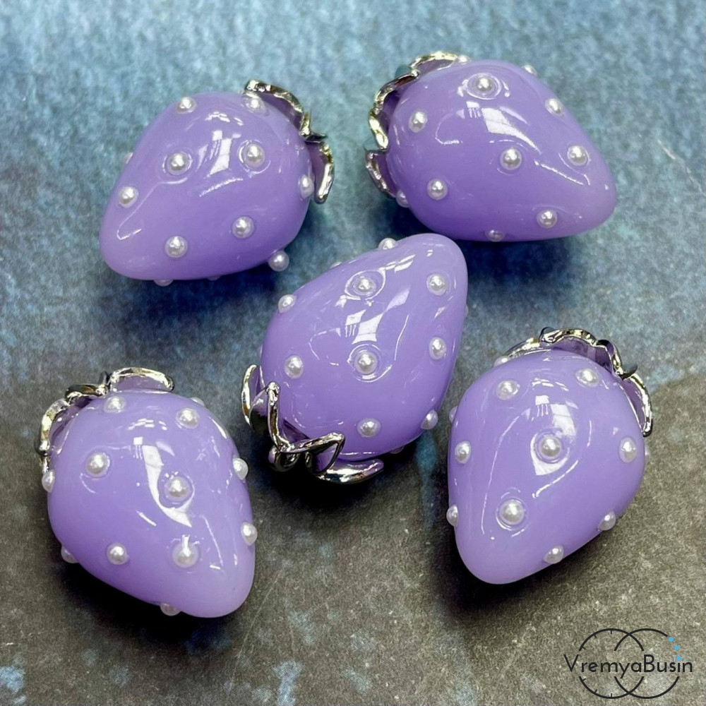 Подвеска из смолы с жемчужинками «Клубничка», ок. 16х24 мм, латунь с родиевым покрытием, цв. лиловый (1 шт.)’