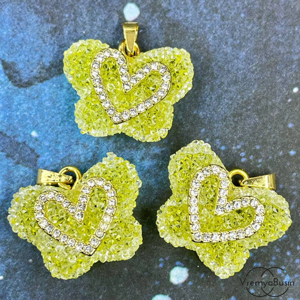 • Подвеска из смолы с акриловыми кристаллами,  бабочка 24х18 мм  с сердечком  (1 шт.)