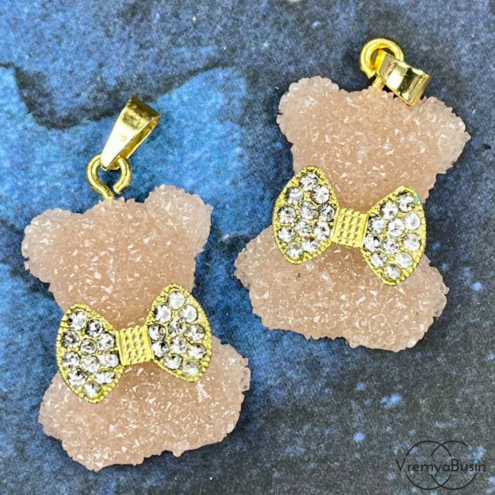 Подвеска из смолы с акриловыми кристаллами, мишка с бантиком 24х20 мм (1 шт.)