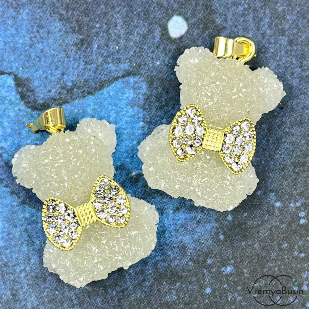 Подвеска из смолы с акриловыми кристаллами, мишка с бантиком 24х20 мм (1 шт.)