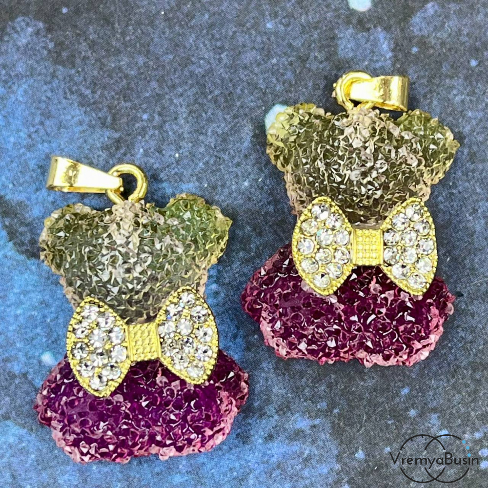 Подвеска из смолы с акриловыми кристаллами, мишка с бантиком 24х20 мм (1 шт.)