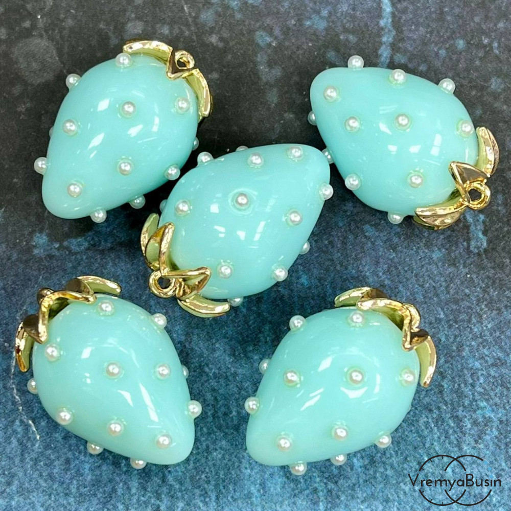 • Подвеска из смолы с жемчужинками «Клубничка», ок. 16х24 мм, латунь с позолотой, цв. голубой (1 шт.)’