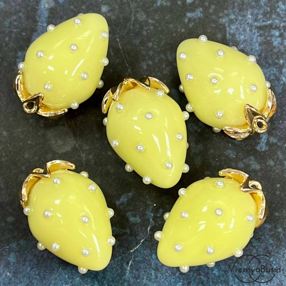 • Подвеска из смолы с жемчужинками «Клубничка», ок. 16х24 мм, латунь с позолотой, цв. лимонный (1 шт.)’