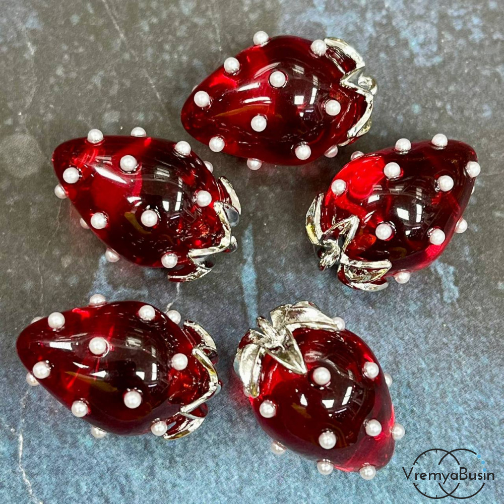 Подвеска из смолы с жемчужинками «Клубничка», ок. 16х24 мм, латунь с родиевым покрытием, цв. красный (1 шт.)’