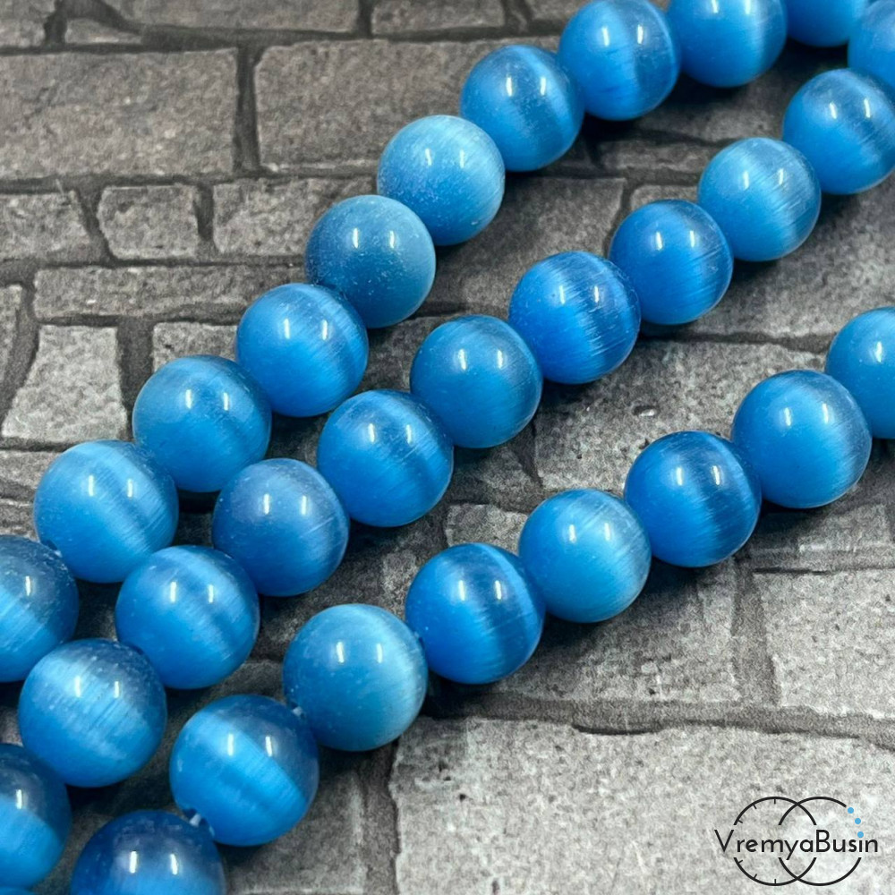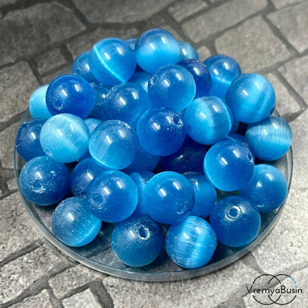 Кошачий глаз синт., шарик гладкий 10 мм, цв. бирюзовый (1 шт.)