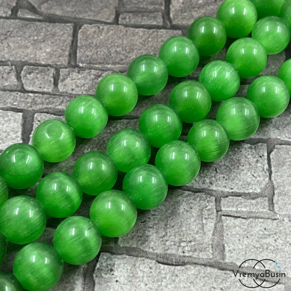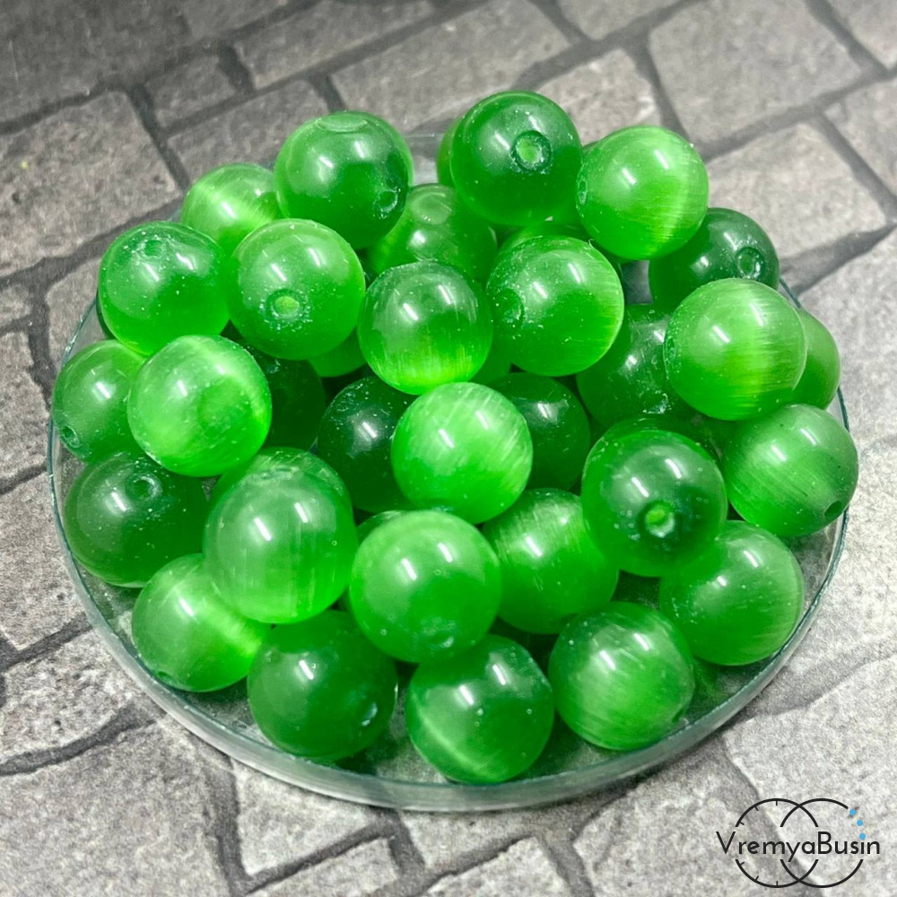 Кошачий глаз синт., шарик гладкий 10 мм, цв. зеленый (1 шт.)