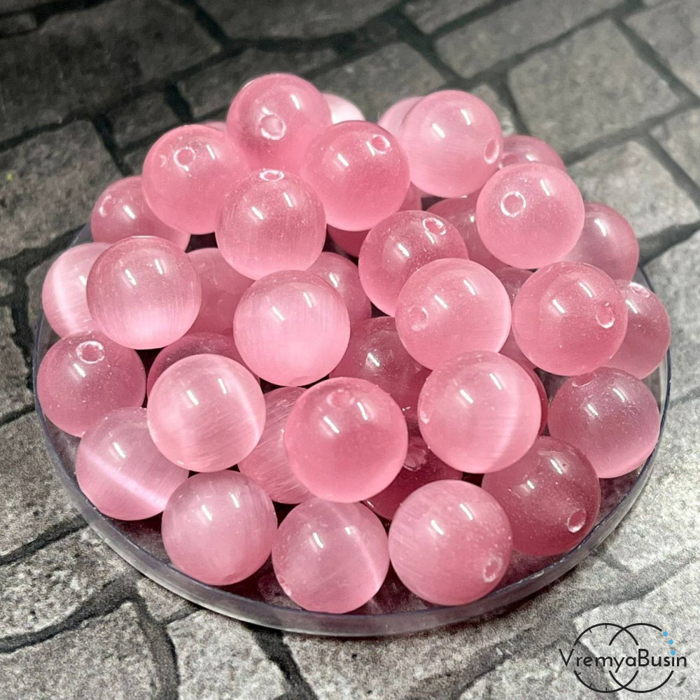 Кошачий глаз имит., шарик гладкий 10 мм, цв. розовый (1 шт.)