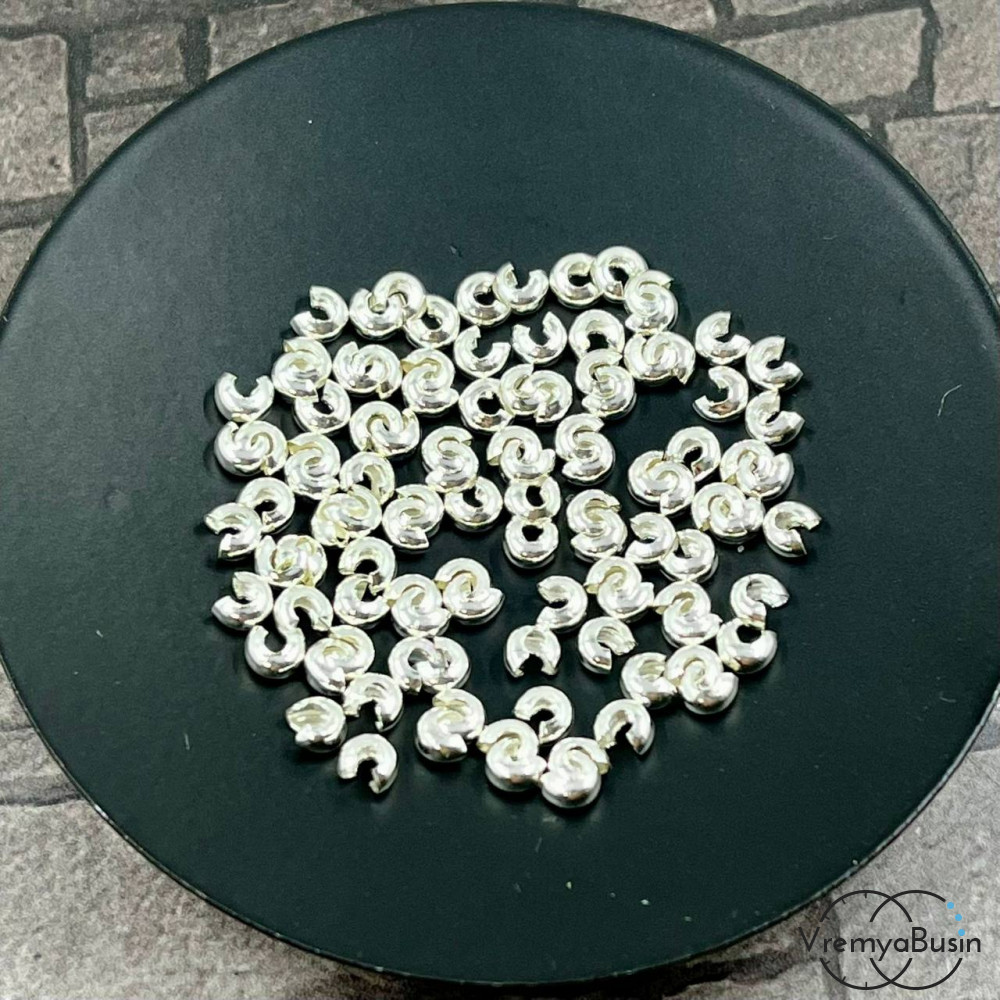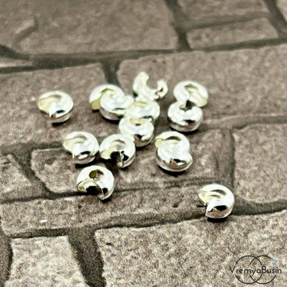 Покрытие для кримпов, 2х4 мм, латунь с посеребрением (1 гр., ок. 15 шт.)