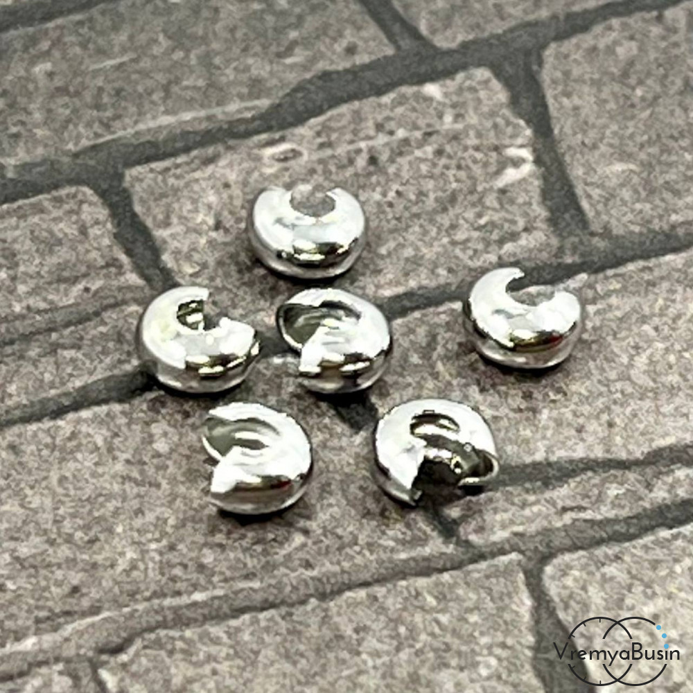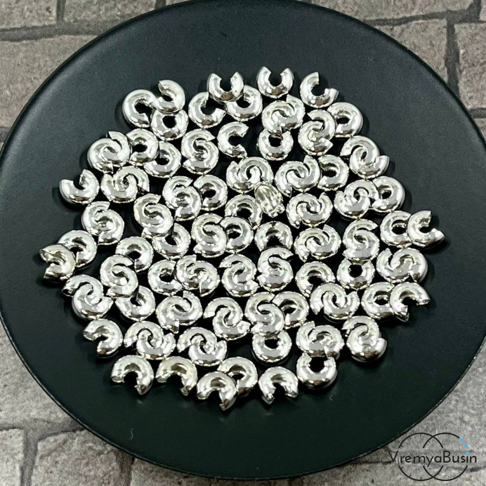 Покрытие для кримпов, 3х5 мм, латунь с родиевым покрытием (1 гр., ок. 10 шт.)