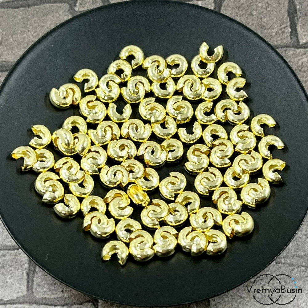 Покрытие для кримпов, 3х5 мм, латунь с позолотой 14К (1 гр., ок 10 шт.)
