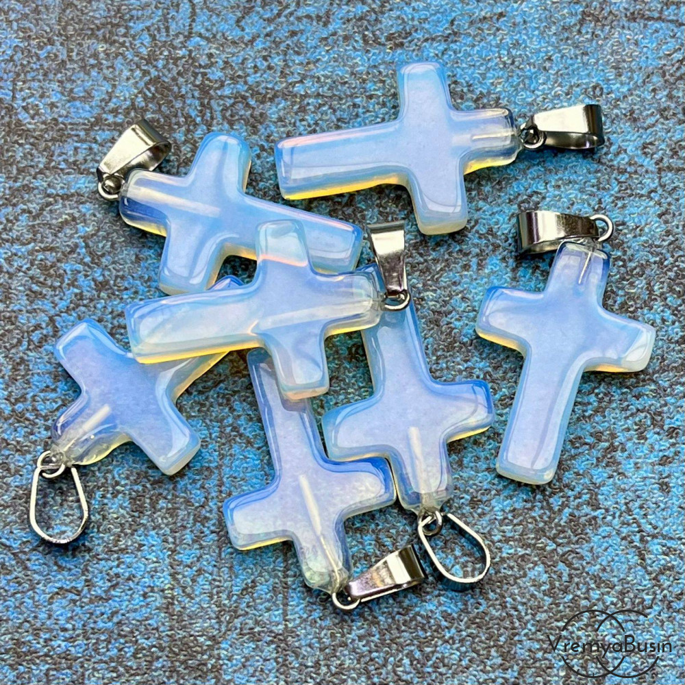 • Лунный камень синт., подвеска из камня, крестик 18х25х5 мм (1 шт.)