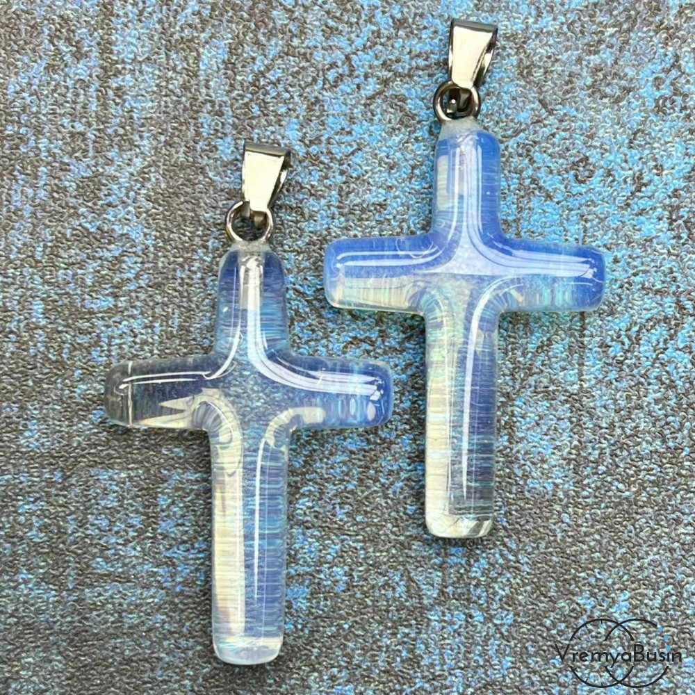 Лунный камень синт., опалит. Подвеска из камня "Крест", ок. 40х28х7 мм (1 шт.)