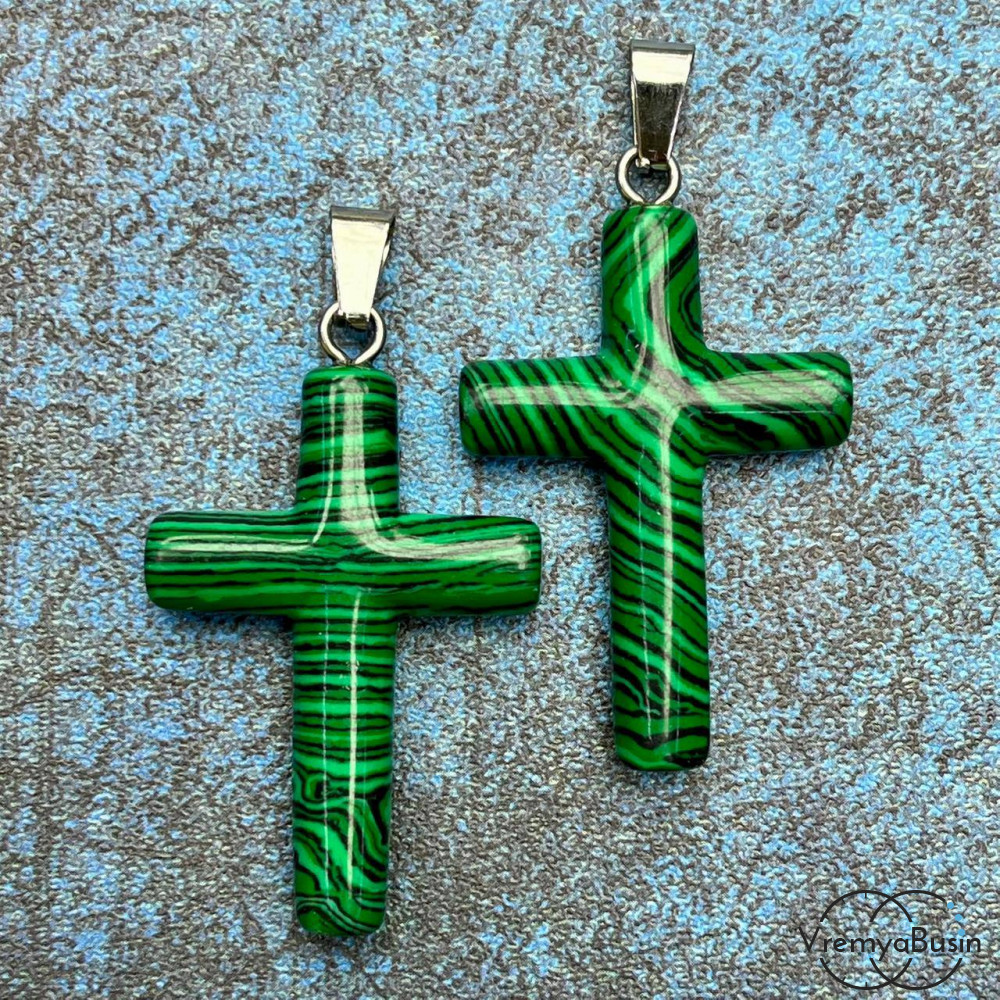 • Малахит имит. Подвеска из камня "Крест", ок. 40х28х7 мм (1 шт.)