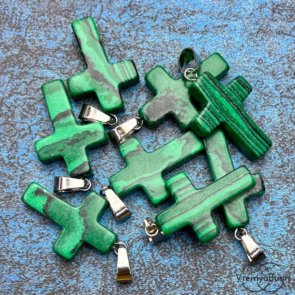 • Малахит имит. Подвеска из камня, крестик 18х25х5 мм (1 шт.)