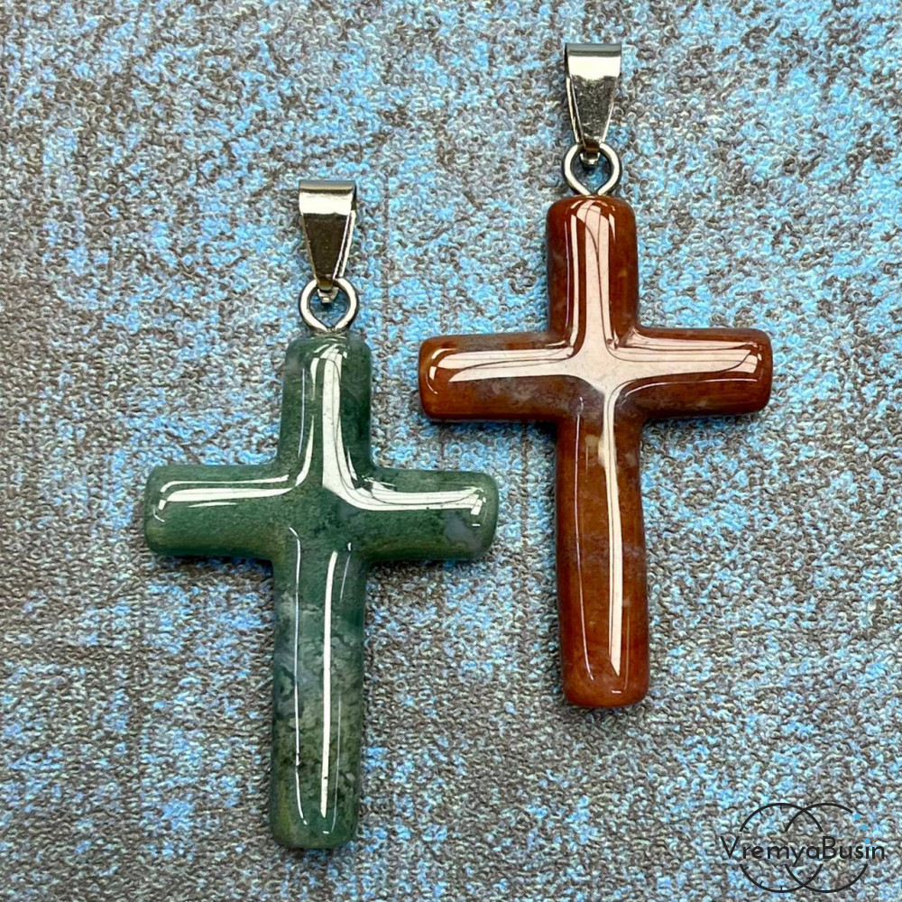 • Яшма индийская. Подвеска из камня "Крест", ок. 40х28х7 мм (1 шт.)