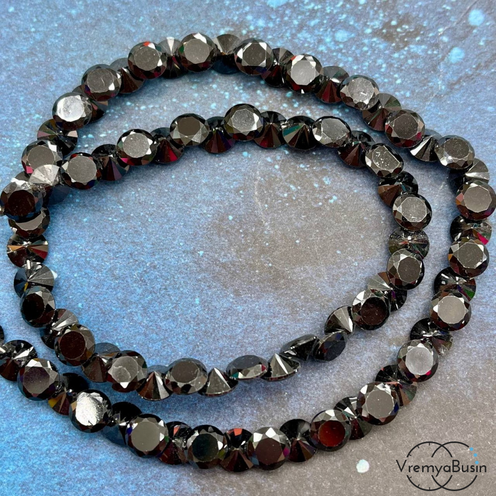 • Циркон граненый фианит, форма лук, 7х4 мм, цв. черный (нить, ок. 75 шт.)