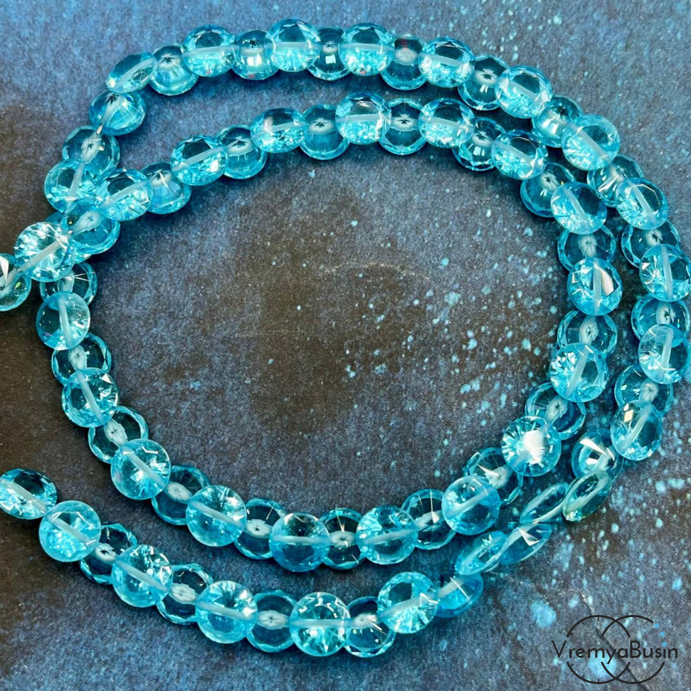 Циркон граненый фианит, форма лук, 7х4 мм, цв. голубой (нить, ок. 75 шт.)