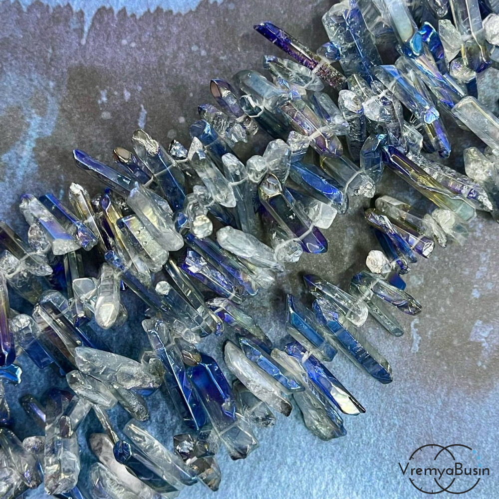 Кварц радужный, мелкие кристаллы, ок. 25-30х5-6 мм, цв. серо-голубой (1/2 нити, ок. 38 шт.)
