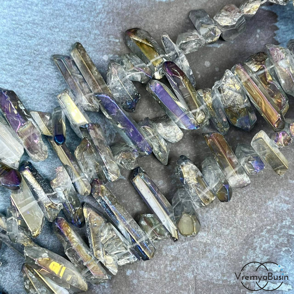 Кварц тонир., мелкие кристаллы, ок. 20-25х7-8 мм, (1/2 нити, ок. 24 шт.)