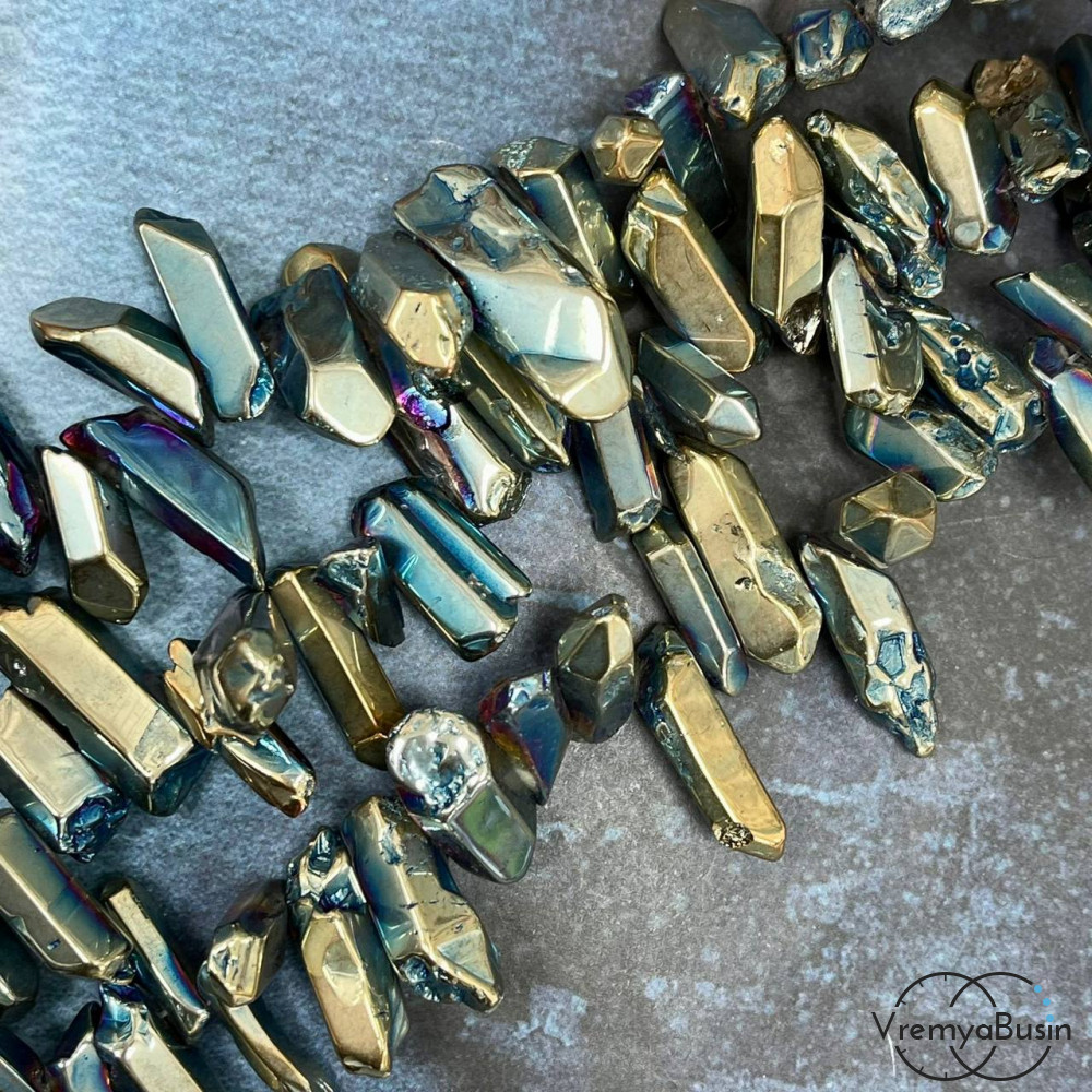 • Кварц тонир., мелкие кристаллы, ок. 20-25х7-8 мм, (1/2 нити, ок. 24 шт.)