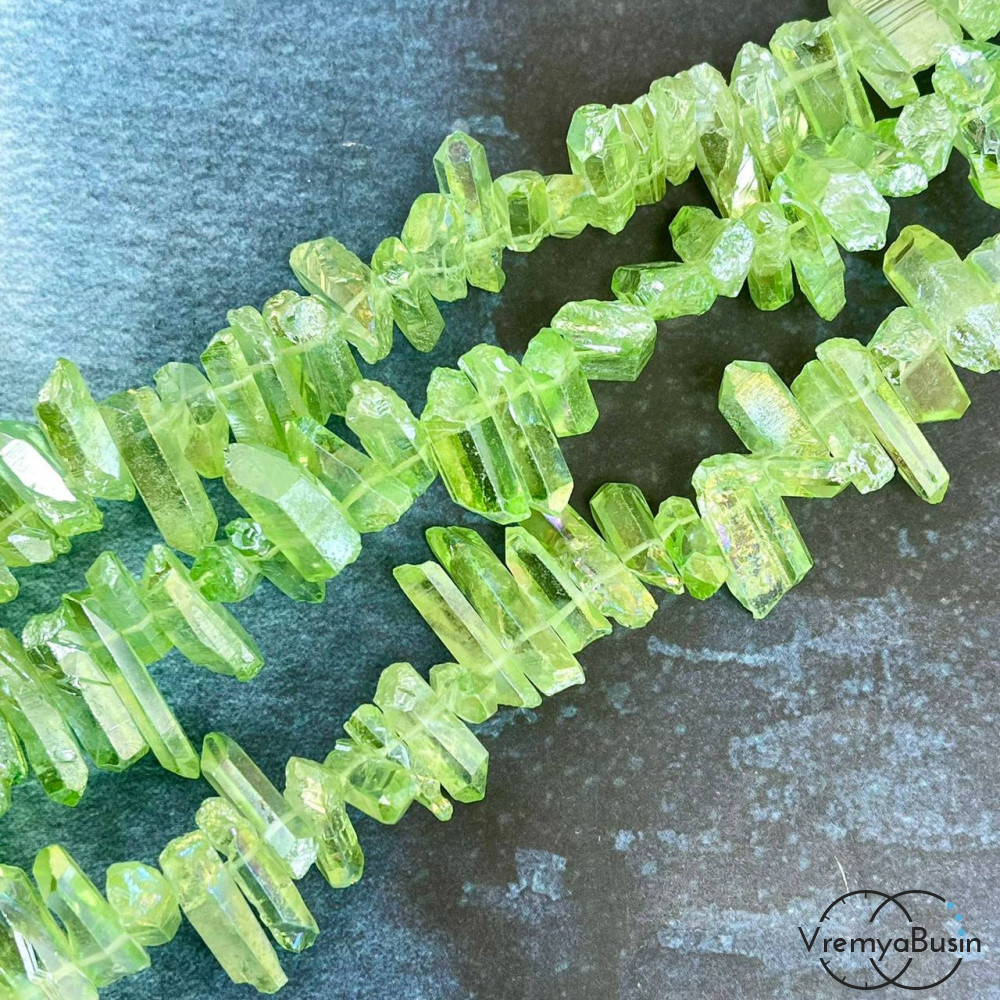 Кварц тонир., мелкие кристаллы, ок. 20-25х7-8 мм, (1/2 нити, ок. 24 шт.)