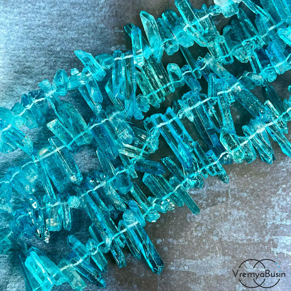 Кварц тонир., мелкие кристаллы, ок. 25-30х5-6 мм, цв. бирюзовый (1/2 нити, ок. 38 шт.)