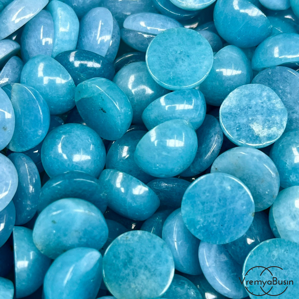 • Кварц аквамариновый, кабошон круглый 15 мм (1 шт.)