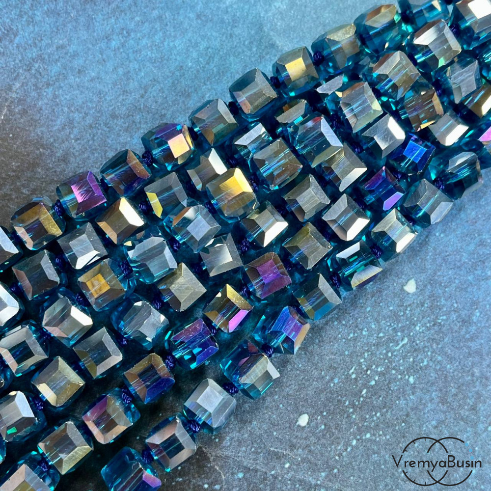• Бусины кубики из граненого стекла, 8 мм   (1/2 нити, ок. 29 шт.)