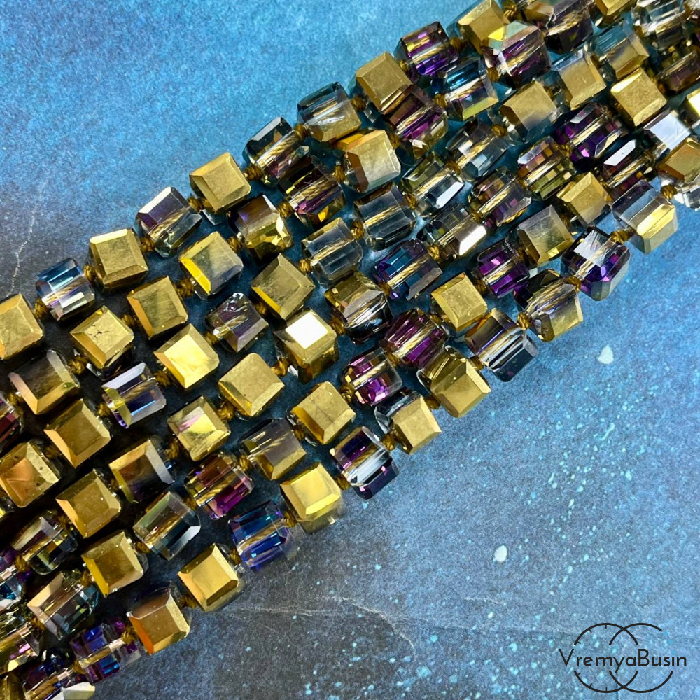 Бусины кубики из граненого стекла, 8 мм (1/2 нити, ок. 29 шт.)