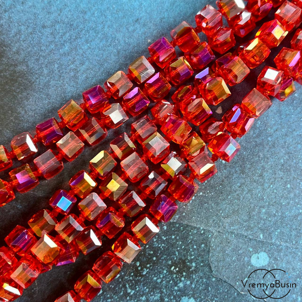 Бусины кубики из граненого стекла, 8 мм (1/2 нити, ок. 29 шт.)