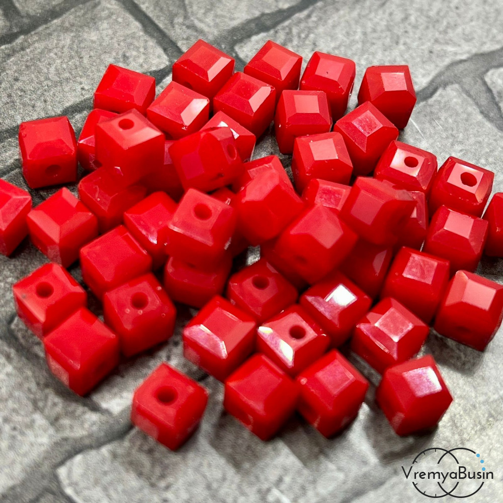 Бусины кубики из граненого стекла, 5 мм, цв. красный матовый (упак. 10 шт.)