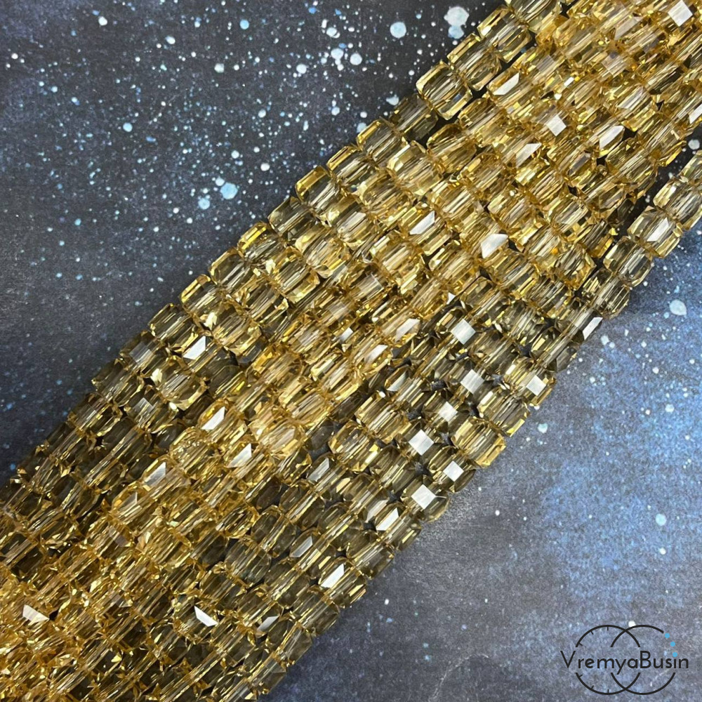 • Бусины кубики из граненого стекла, 6 мм, цв. медовый  (1/2 нити, ок. 35 шт.)