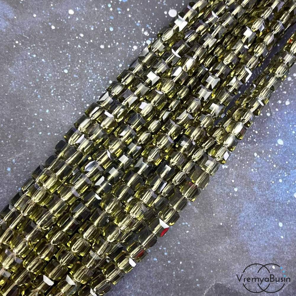 Бусины кубики из граненого стекла, 6 мм, цв. дымчатый (1/2 нити, ок. 35 шт.)